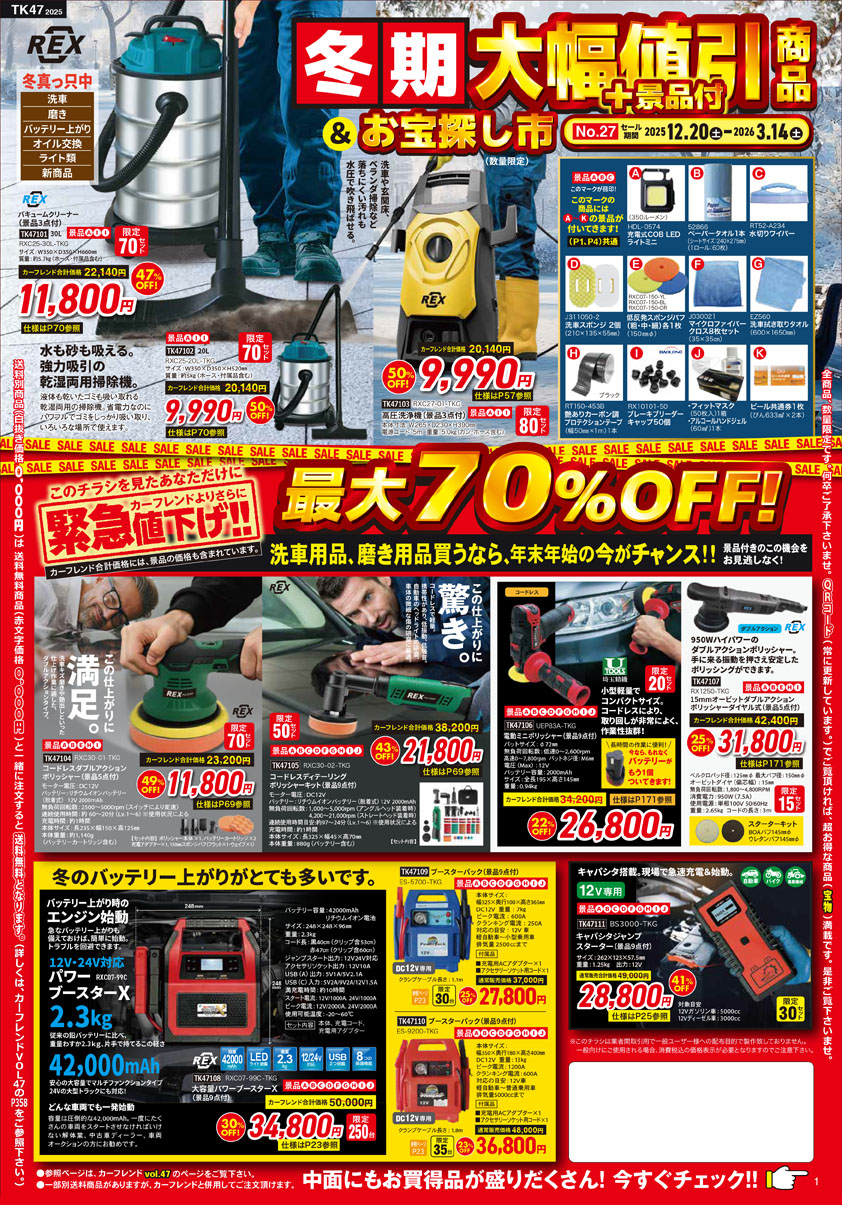 【TK47】▼ダウンロードはこちらから。一部別送料商品がありますが、カーフレンドと併用してごご注文いただけます。有効期限2025年12月20日~2026年3月14日まで